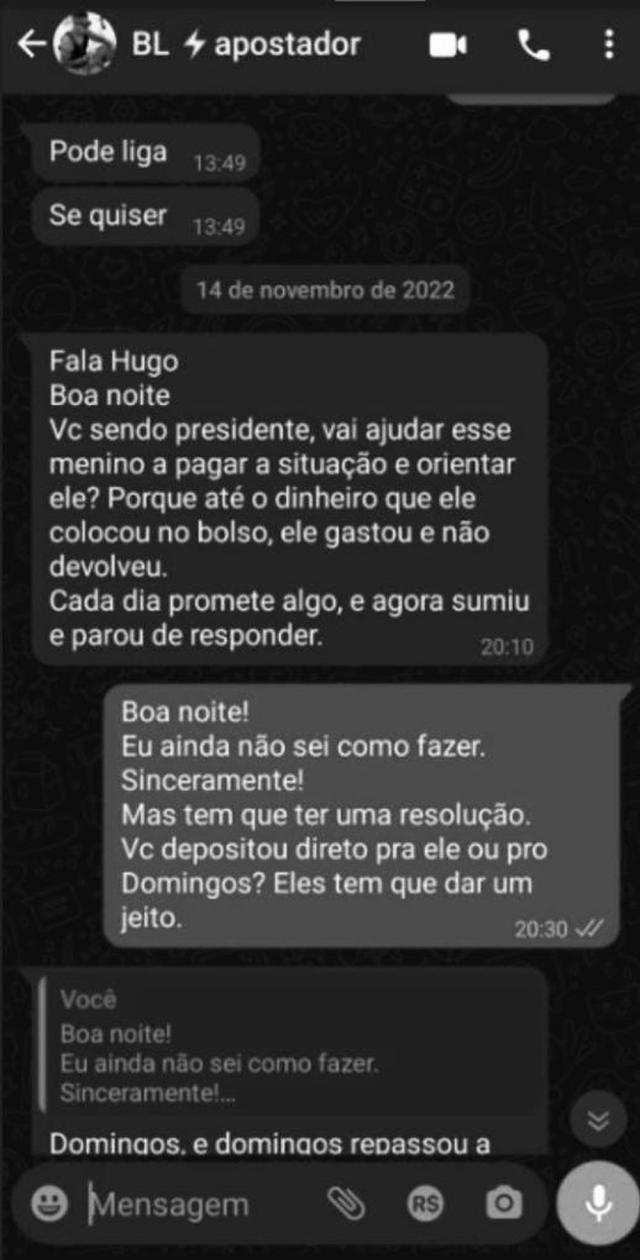 布拉沃很聪明,他没有马上报警。除了是维拉诺拉俱乐部主席,布拉沃还是巴西军事警察。他知道,要想举报假球案罪犯,得有真凭实据。于是他通过聊天软件,跟罗马里奥和操纵比赛案的组织者之一布鲁诺·洛佩斯·德·莫拉联系上了。通过三人之间的对话记录,布拉沃获得了充分的证据,之后他才报案。